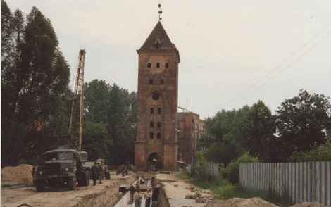 Czy ktoś dokładnie zmierzył wieżę kościoła św. Mikołaja? Różne źródła podają różną jej wysokość – od 95 do 103 metrów. No dobrze, nie wiemy jak jest wysoka, ale za to wiemy kiedy i dlaczego powstała. Po wielkim pożarze z kwietnia 1777 roku miasta nie stać było na pełną odbudowę kościoła św. Mikołaja. Przez cały XIX wiek katolicka fara miała kształt wielkiej stodoły: była to bryła przykryta jednym, nieproporcjonalnym dachem z niewielką sygnaturką na kalenicy.Budowy kościelnej wieży podjął się Otto Depmeyer, mistrz budowlany z długoletnią praktyką. Depmeyer stanął przed sporym problemem: musiał stworzyć konstrukcję na miarę ambicji Elbląga przy ograniczeniach, jakie stwarzał niestabilny grunt. Poprzednia wieża przechylała się, dlatego trzeba było ją wzmacniać dwiema mniejszymi. Rozwiązanie tego problemu znalazł w Paryżu w wieży Eiffla. Na solidnych murach podstawy Depmeier ustawił stalową konstrukcję, obudowaną lekkim murem. Dzięki temu mógł wynieść wieżę aż do ok. 100 metrów. Projekt spodobał się inwestorowi i 24 października 1906 odbyła się uroczystość wmurowania kamienia węgielnego. Budowa trwała rok i kosztowała 256 tys. marek. Na piętrze urządzono bibliotekę parafialną, a w górnych kondygnacjach powieszono dzwony i mechanizm zegarowy. Z umieszczonych na wysokości ponad 90 metrów balkonów rozciągał się widok na Zalew Wiślany, pochylnie i sąsiedni Gdańsk.